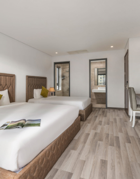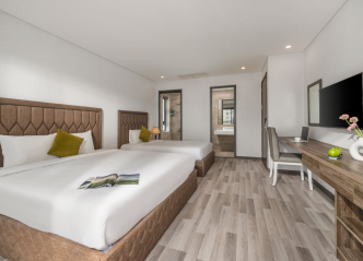 Đây là lựa chọn hoàn hảo cho gia đình hoặc nhóm bạn từ 3 đến 4 người. Với tổng diện tích 40m², căn phòng được thiết kế với một giường đôi lớn 1m8 và một giường đơn 1m2, mang đến không gian thoải mái cho mọi người. Đây là nơi lý tưởng để gia đình bạn tận hưởng những khoảnh khắc vui vẻ và gắn kết bên nhau trong một không gian ấm cúng và tiện nghi.
