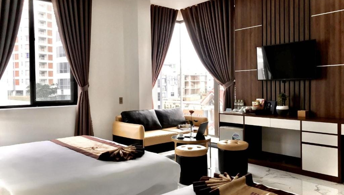 Phòng nghỉ tại Anh Nguyệt Hotel được trang bị đầy đủ tiện nghi hiện đại, bao gồm điều hòa, tủ lạnh, TV màn hình phẳng, và nhiều tiện ích khác. Mỗi phòng đều có cửa sổ lớn, giúp bạn tận hưởng không khí trong lành và cảnh quan thành phố Đà Nẵng tuyệt đẹp.