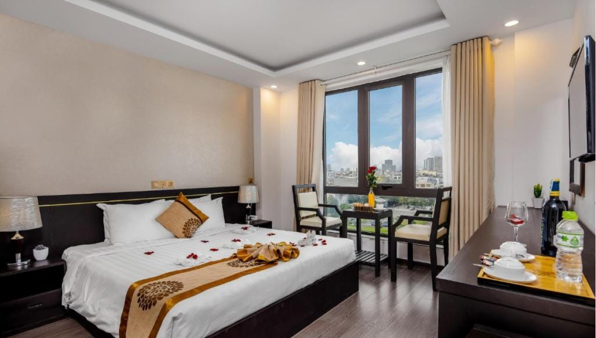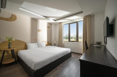 Khách sạn nổi bật với phòng honeymoon thiết kế trang nhã, sử dụng tone màu pastel nhẹ nhàng, tràn ngập ánh sáng tự nhiên cùng ban công nhỏ để ngắm phố biển nhộn nhịp về đêm. Nội thất được lựa chọn kỹ lưỡng với giường lớn, phòng tắm kính và dụng cụ vệ sinh cá nhân cao cấp, điều hòa trung tâm luôn sẵn sàng phục vụ 24/24.